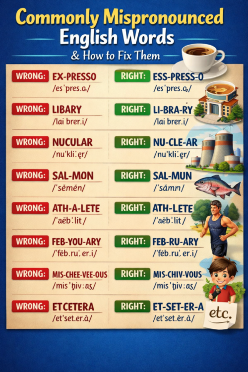 The idea is not to sound perfect but to be understood with clarity and confidence. Learners can take their spoken English to the next level by learning which words are mispronounced in English and correcting them appropriately.